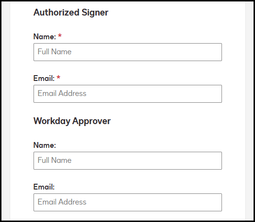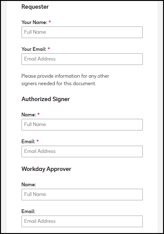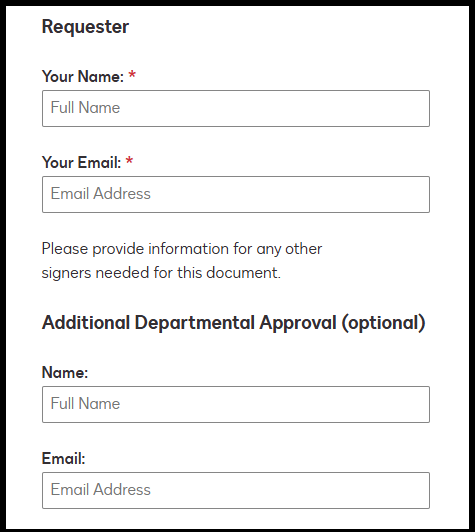 - Additional Departmental Approval (optional): This is an optional step for departments that would like a request to pass through someone else in the department for review prior to the request going forward to the signers for approval.