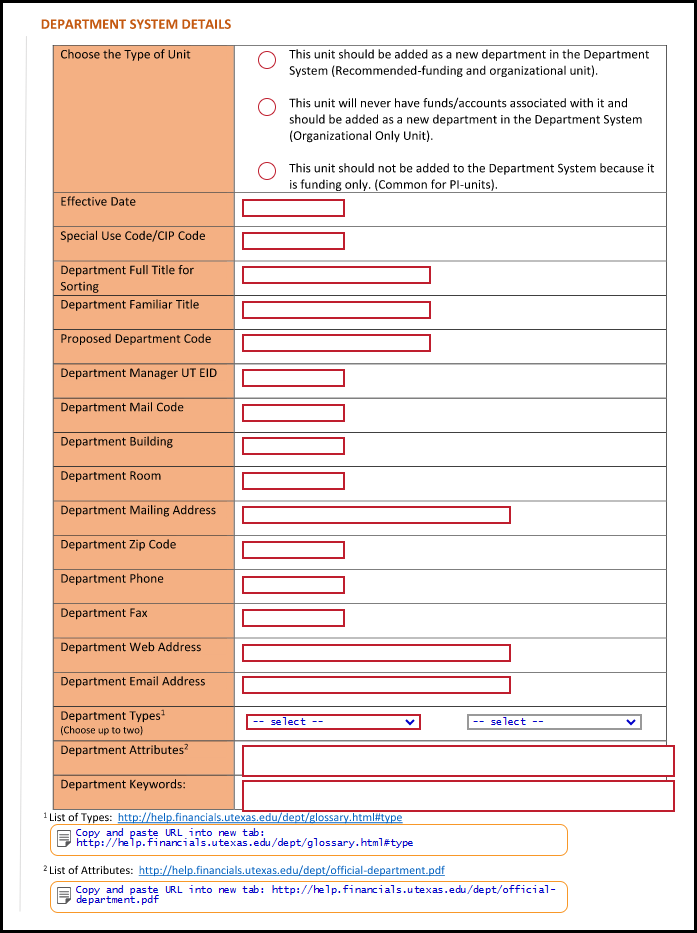 If the unit is marked funding, it will be connected to accounts and finance. If it is marked departmental/organizational only, it will only appear in the Department System and Workday as a personnel sort of unit and it will not be connected to accounts and funding.