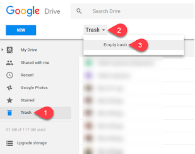 - Items in your Trash Bin take up space in Google Drive, but aren't synced to your computer.